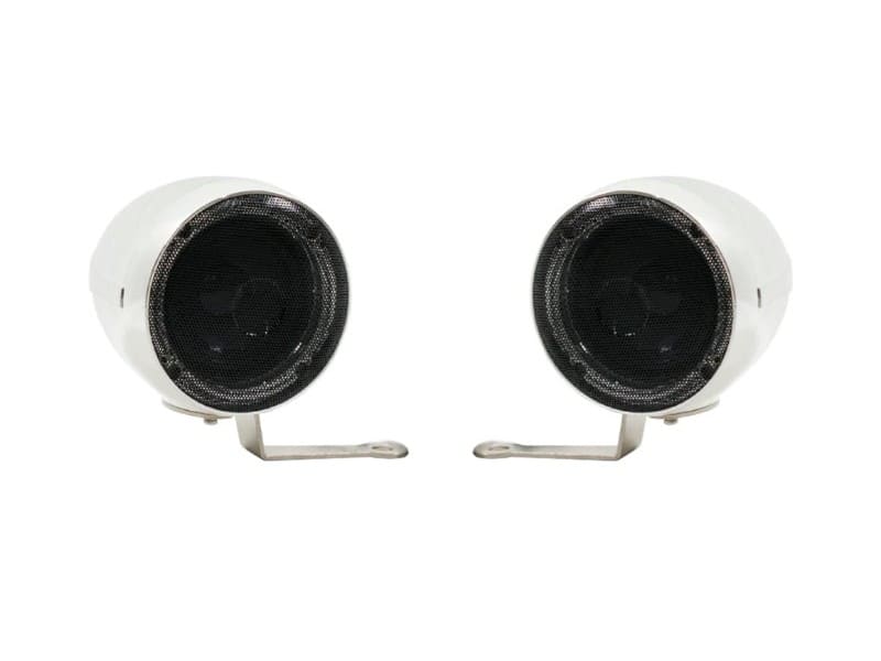 Динамики для мотоцикла имеют диаметр 3 дюйма, т.е. 75 мм, и достигают максимальной мощности 2х50 Вт. Они выполнены из пластика и устанавливаются на руль мотоцикла. Усилитель в данных мото динамиках не предусмотрен, однако при желании вы можете заказать его, добавив в корзину товар DRC111BT.