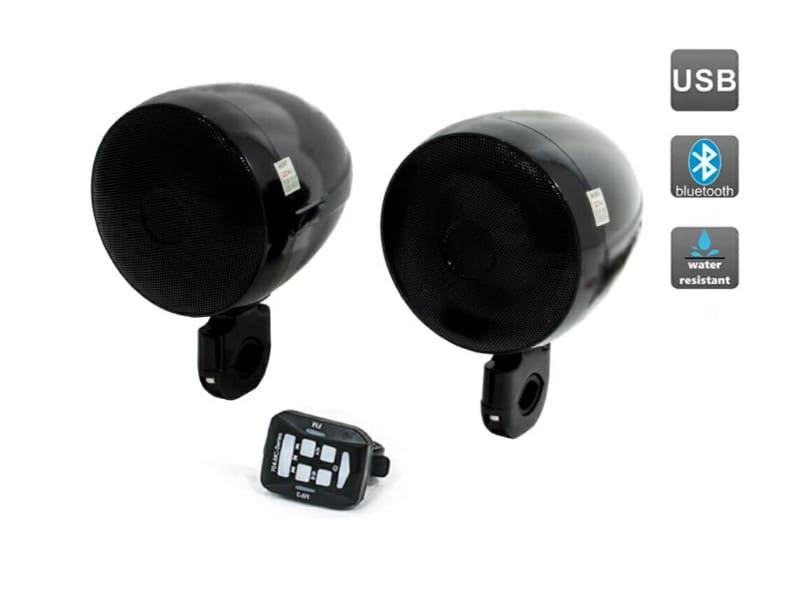 Эта мото аудиосистема для мотоцикла позволяет прослушивать файлы со смартфона или MP3-плеера с помощью Bluetooth. Она также оборудована USB-входом.