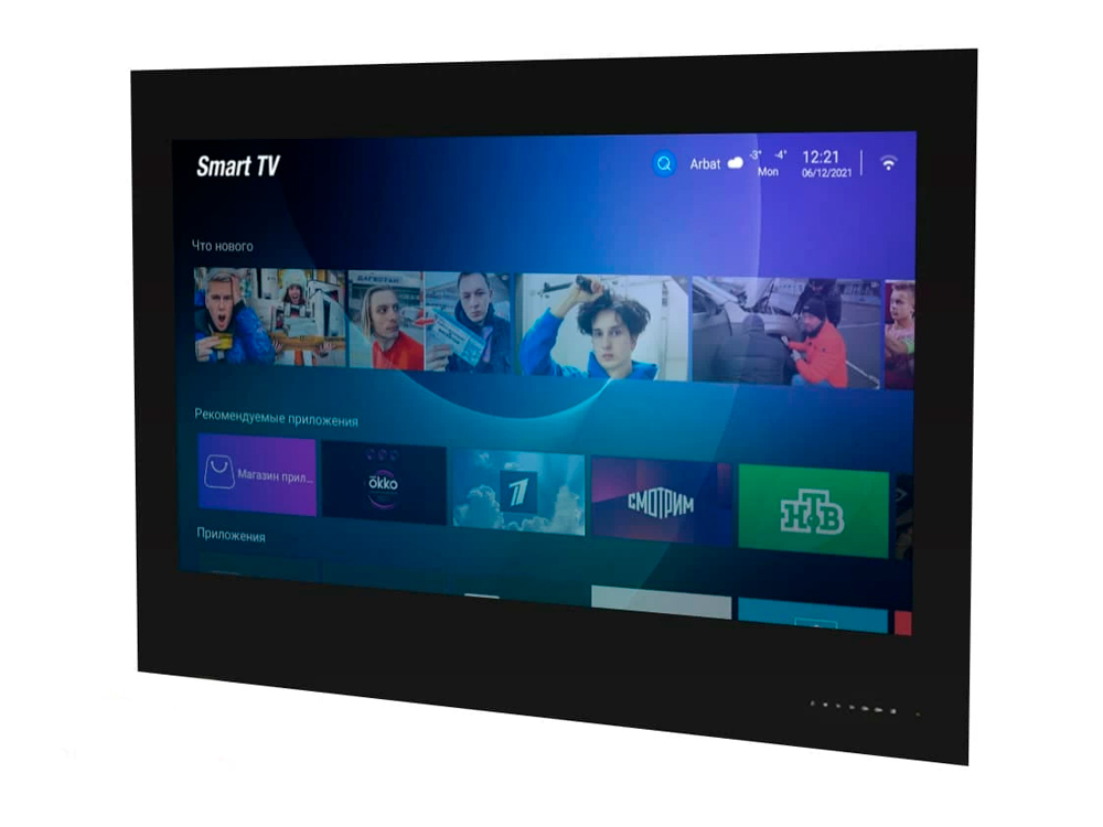 Корпус встроенного телевизора обладает стандартной защитой IP*4 от влаги. В комплекте также поставляется влагозащищенный пульт дистанционного управления, обеспечивающий удобство использования. Гарантия на устройство составляет 2 года с момента покупки, подчеркивая надежность и качество данного продукта.