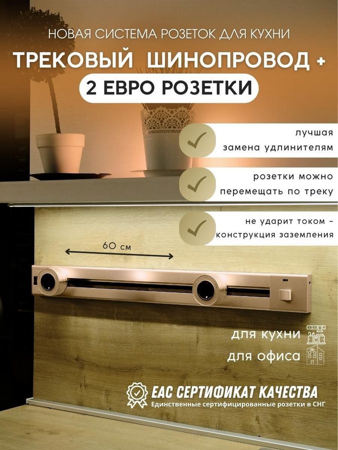 | Комплектация: | шинопровод; розетки ЕВРО - 2 шт |